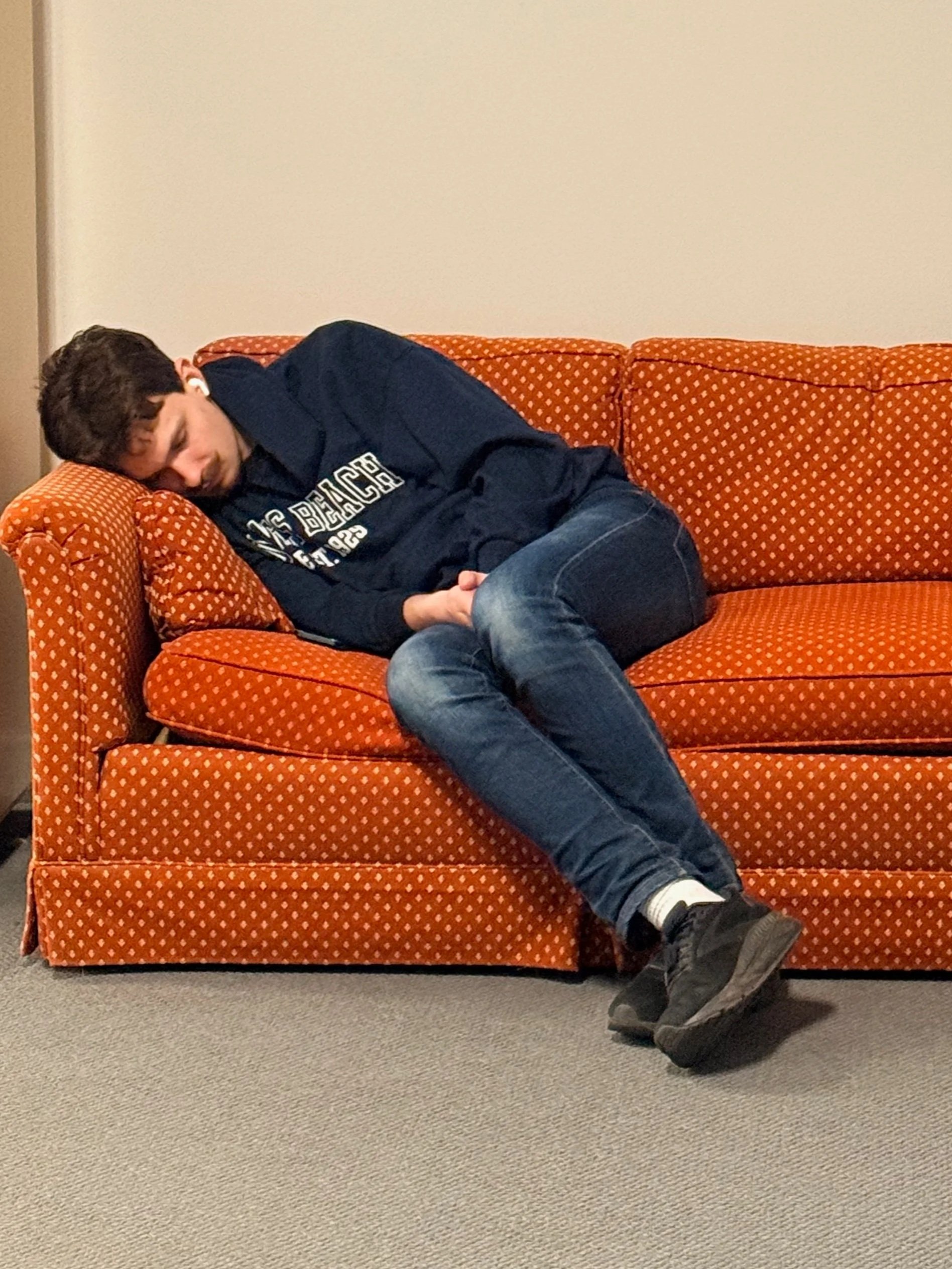 Zach, napping after working hard on experiments in the lab! He is working on his thesis project for the UVA Distinguished Majors Program.